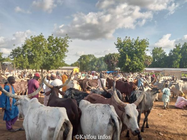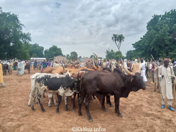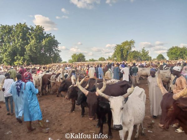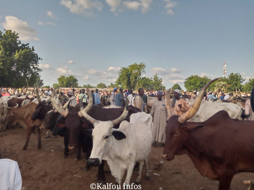 Il est exactement 17h, ce vendredi 31 octobre 2025, malgré la situation difficile que traverse le pays, le marché à bétail de Kalfou bat son plein.