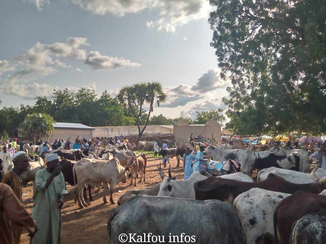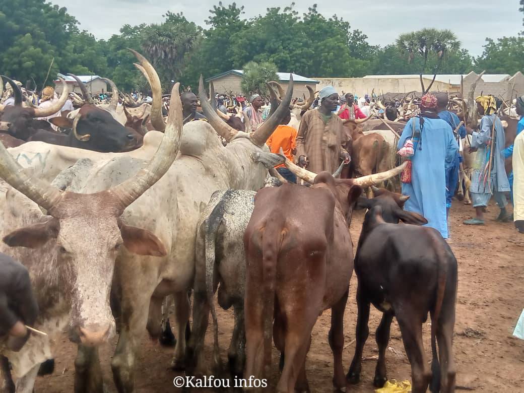Il est exactement 17h, ce vendredi 31 octobre 2025, malgré la situation difficile que traverse le pays, le marché à bétail de Kalfou bat son plein.